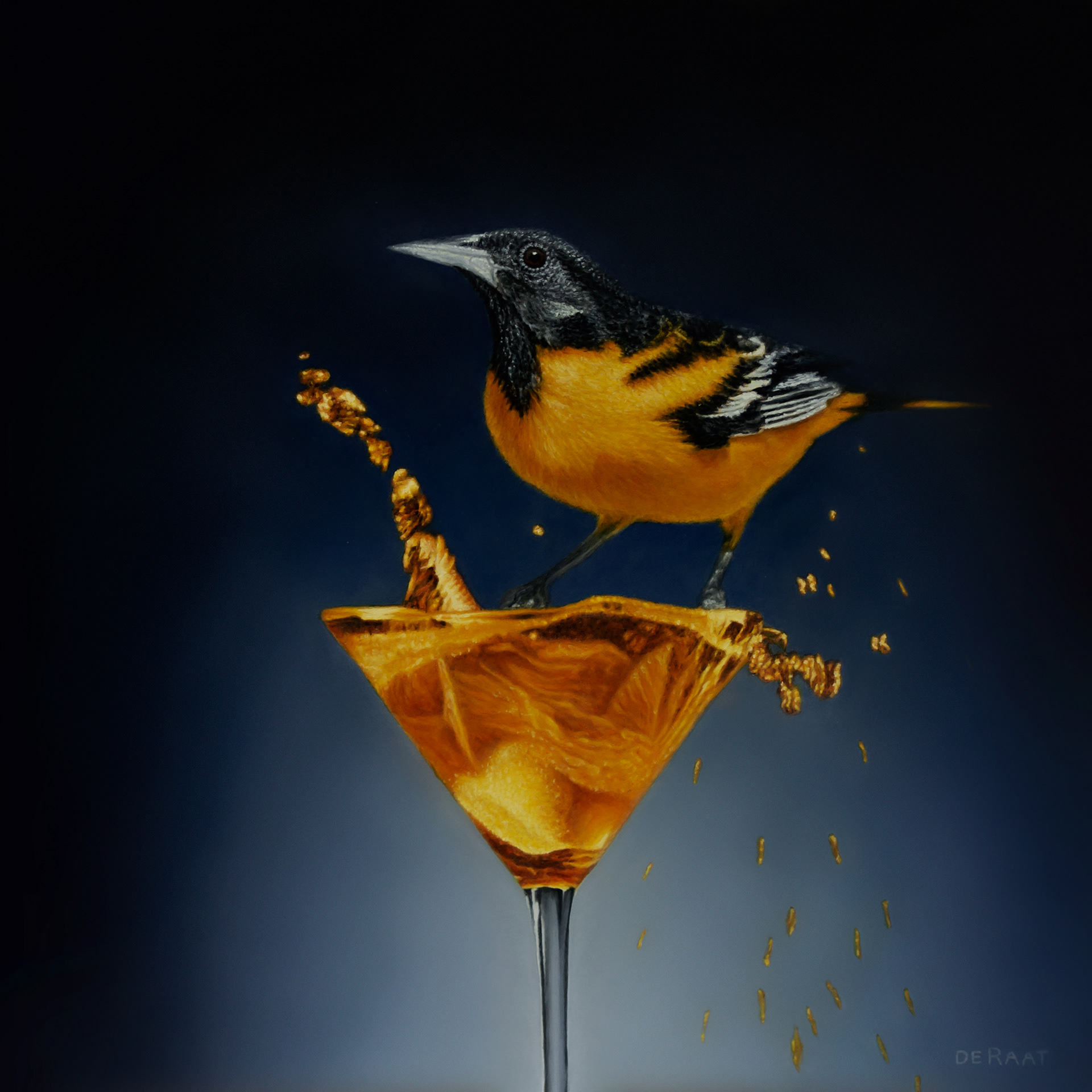 BIRD AND COCKTAIL – OIL ON CANVAS | 61cm x 61cm