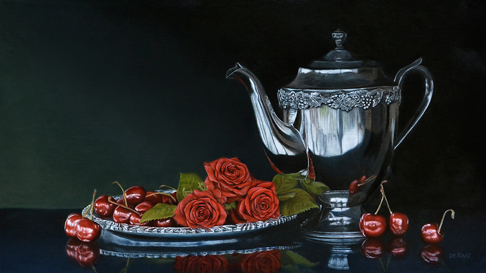 ROSES AND CHERRIES – OIL ON LINEN | 80CM X 45CM